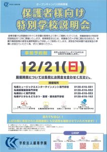 経専学園では保護者様の方々に本学園をより深くご理解いただくため、保護者様向け特別学校説明会を12月21日(日)に開催します。