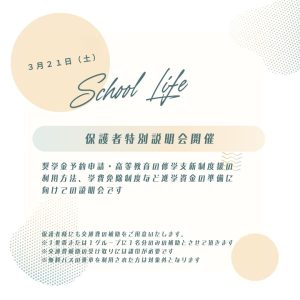 経専学園では保護者様の方々に本学園をより深くご理解いただくため、保護者様向け特別学校説明会を3月21日(土)に開催します。